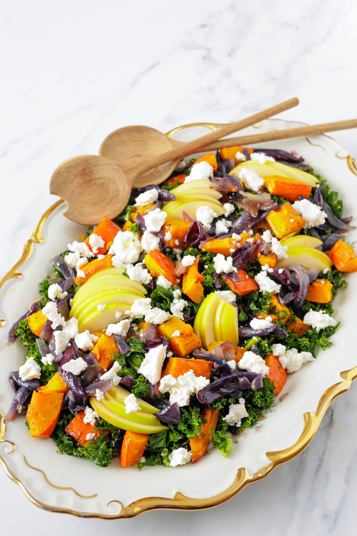 Græskarsalat med bagt hokkaido, grønkål og feta